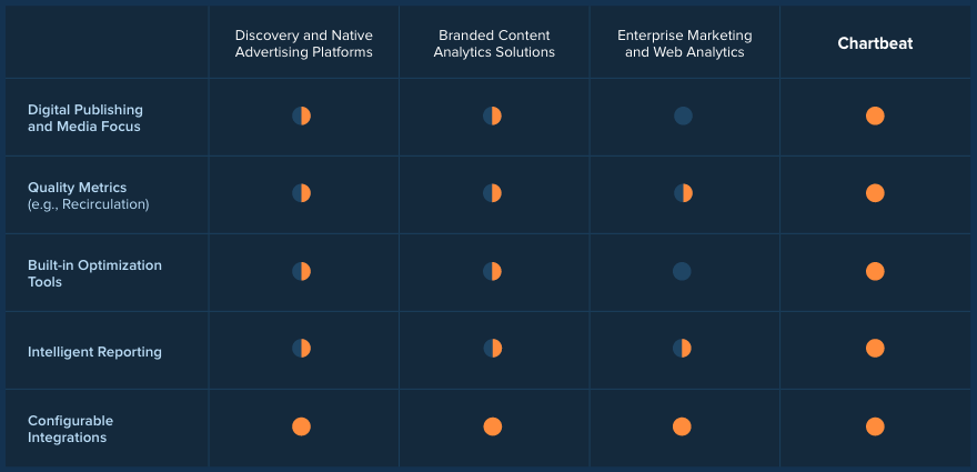 What makes Chartbeat different? See the overview below or download a full report of 16 different features compared using this form >>>